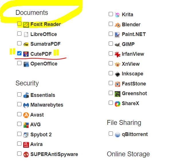3. 스크롤을 내려 “Documents” 항목 중 “CutePDF” 를 클릭합니다.